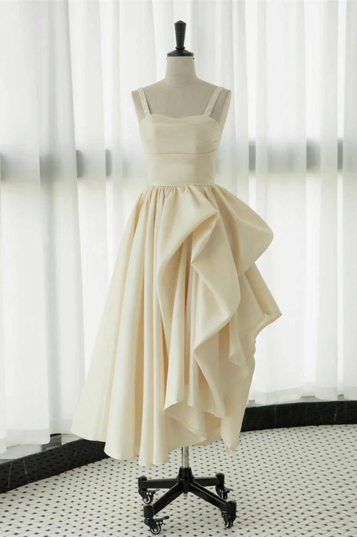 Champagne Tea Length Prom Dresses, Champagne Tea Length Formal Homecoming Dresses