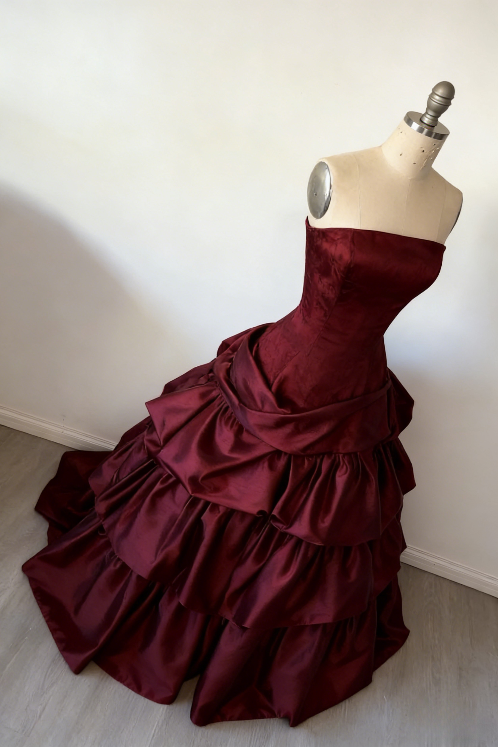 Gorgeous A-Line Burgundy Prom Dress Satin Strapless Long Evening Dress Sleeveless Birthday Dress ED06451