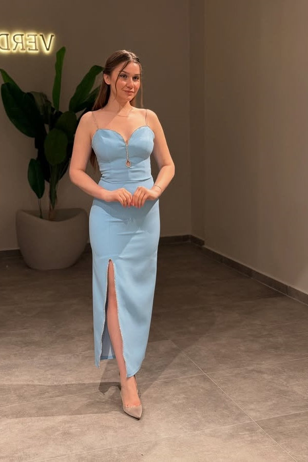 Gorgeous Baby Blue Keyhole Spaghetti Strap Prom Dress A Line with Split - liymcdress