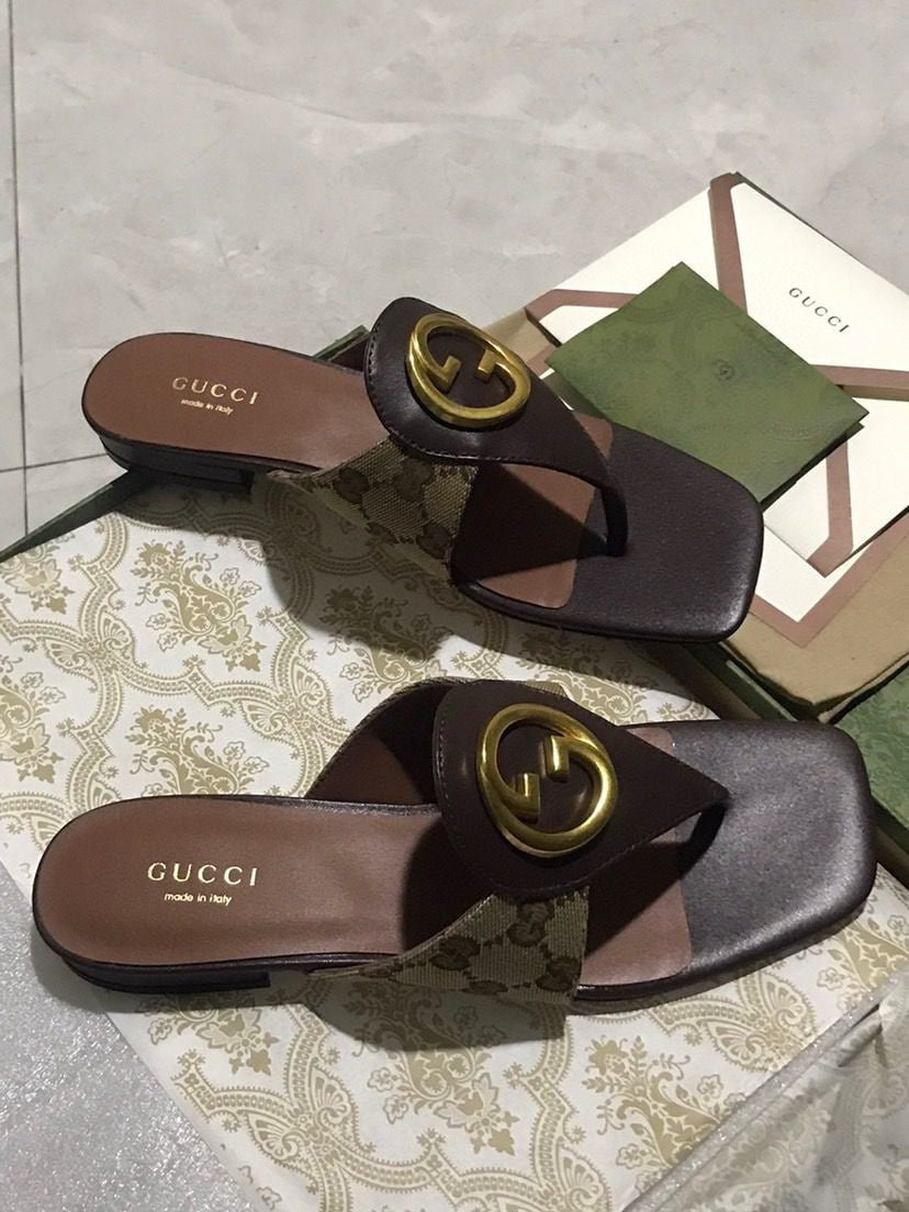 GUCCI BLONDIE THONG SANDALS BROWN P00810550