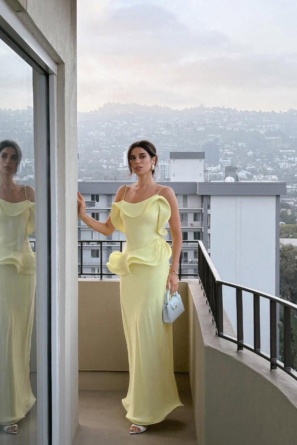 Yellow Spaghetti Strap Ruffles Prom Dress Mermaid with Pleated - liymcdress